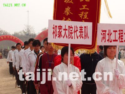 | 4月16日,由河北永年广府太极拳协会主办的“2006河北永年广府第三届太极拳年会拳技大赛”在广府西街武馆太极广场隆重开幕!来自河南、河北、山西、四川、广东、浙江、上海、新加坡等世界各地的太极拳爱好者60余支代表队,近1000人参加了此次盛会。