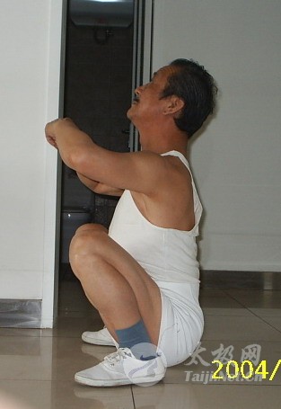 下蹲时尽量蹲的低,当然刚开始要求你蹲的和我一样低是不现实的,因为我已蹲到最低点,屁股已经差不多是坐在地上了。但只要你有往低处蹲的要求,尽力而为,髋关节、膝关节、踝关节的柔韧性会逐渐增强,即通常讲的“开胯”。要注意不可急于求成,要逐步的慢慢来,欲速则不达,否则将使你受到伤害。柔韧性的提高了对今后练拳大有好处,练拳的动作容易达到标准。应当注意的是:提高柔韧性不是单靠蹲起实现的,在今后练拳的过程中,你各方面的能力都会逐步提高。 三、起立:两眼仍一直看着天花板,脊柱要挺得很直,使躯干保持着竖直往起站,也就是说让两腿伸直,用腿的力量把身体举起来。绝不可用弯腰撅屁股的方法,投机取巧地把腿伸直。这样使身体竖直着站起来,腿部肌肉伸展和收缩的范围最大,锻炼效果最好。 按照以上标准每天进行蹲起训练,保证每天总训练时间不少于40分钟。根据自己身体情况,设定每天要完成的蹲起目标总数,分几次来完成。每次训练极限以练到腿的支撑力仍能保证姿势正确为度。经过一段时间的训练,逐渐增加单次连续完成蹲起的数量。这样有目标、有标准的训练能够让你对自己的进步非常清楚,可以做到心中有数。 以前我曾以能够单次连续完成标准蹲起300次,作为跟我学拳的入门条件。由此我可以判断:第一,学拳的基础扎实;第二,学拳的态度认真。现在是你自己看书学拳,希望你不要耍小聪明,认真的按标准做蹲起训练,尽量多练,循序渐进,基础扎实了再进入三体式的学习。考核基础扎实的最低标准是能够单次连续完成标准的蹲起150次。 |