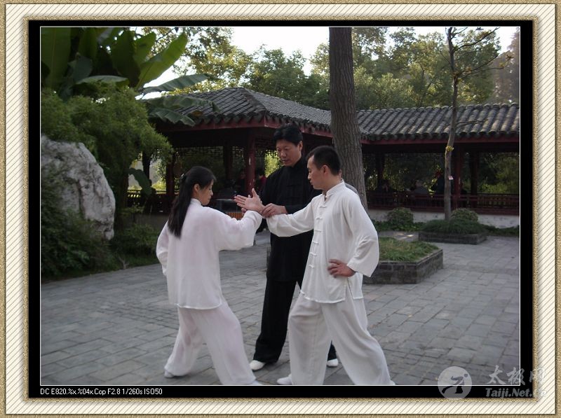 太极推手要经过扎己根、去己根、去彼根三步功夫。这三步功夫揭示了功夫长进的规律及修炼的方法和注意的事项。现将其每步功夫介绍如下: 一、扎己根 欲求功夫,必先求扎己根。太极推手功夫把扎己根作为首要问题,因为扎己根是一切功夫之源。自己脚下没有根,就谈不上有推手功夫。太极推手和其它事物一样,非有根基不行。树无根则枯,楼无基则倾。太极推手若脚下无根,就会像无根浮萍,随波逐流,经不住冲击,不仅不能发出整体劲,自身也很难站稳。一旦身体遭受 外力,就容易摔倒。如何才能扎己根?最好的办法就是练静力桩。正如王芗斋在《意拳正轨》中所说的“欲求技击妙用,须以站桩换力为根始。所谓使弱者转为强,拙者化为灵也。”太极推手常采用的有13种静力桩。即无极桩、太极桩、伏虎桩、推山桩、托塔桩、四象桩、贯顶桩、托抱桩、托天桩、三体桩、两仪桩、七星桩、五行桩。 十三静力桩是太极拳内功功法,是一种保持一定的身体姿势、神意保持于一定的状态、静止站立的练习方法。经常练习站桩可达到形体放松、神意安然、呼吸匀和、内气顺畅、血液通利、筋骨舒柔、肌肉温养、经络疏通,使神经系统得到充分休息、调整和锻炼等效果。还可促进体内务系统的新陈代谢,增强腿部的坚固和柔韧性,改善内脏器官,从而达到养生、祛病、强身和益智的目的。站桩既能使人体平衡发育,调节和增进生理功能,又可增进人体本身所特有的内在力量。站桩可以蓄力于全身,为推手、技击打下良好的基础。因此,拳谚有“百练不如一站”,“练拳无桩步,房屋无立柱”之说。拳理中又有“欲求技击妙用,须以站桩换劲为根始,所谓使其弱者转为强,拙者化为灵”的精辟论述。由此可见,站桩既能增强体质,稳固根基,又是提高技击能力的一种有效方法。 1.无极桩 无极桩又称为自然桩,是太极拳内功重要的桩法之一,被历代拳家认为是太极拳的根基。拳理说:“太极者,无极而生也。”练习此桩时身体处于高度放松的状态, 意形合一,阴阳相调,无形无象,是一种平衡和谐的内在运动。经常坚持站无极桩,能收到培养元气,放松身体,稳固身体重心,端正身体姿势,增强腿部力量的作用和健身强体的功效。 2.太极桩 太极桩也称为三圆桩,又称浑圆桩。是太极拳桩功中重要的内功桩法之一。经常站太极桩,能收到端正身体姿势,增强腿部力量,稳定身体重心,增强两手劲力,提高听劲的能力作用,收到强身健体的效果。 3.伏虎桩 伏虎桩又称按球桩,是太极拳常用的内功功法之一。经常站伏虎桩能收到端正身体姿势,增强腿部力量,稳定身体重心,增强两手之内劲和两手的听劲能力,收到健身强体的功效。 4.推山桩 推山桩又称朝阳桩,是太极拳重要的内功桩法之一。经常站推山桩,可稳固根基,增长功力,提高两手听劲能力,收到强身健体的效果。 5.托塔桩 托塔桩又称大字桩,是太极拳重要的内功功法之一。经常站托塔桩,能稳固根基,增长两腿两臂的力量,使身体放松,姿势端正,收到健身强体的作用。 6.四象桩 四象桩也称四向桩或称为侧推桩,是太极拳内功重要的功法之一。经常站四象桩,能稳固根基,增长两 腿两臂的力量和周身的整劲,使身体高度放松,端正姿势,提高两手听劲的技能,收到健身强体的功效。 7.贯顶桩 贯顶桩也称为罩顶桩或上合桩,是太极拳内功重要的功法之一。经常站贯顶桩,能稳固根基,增长两腿的力量,可使丹田之气充盈,全身高度放松,起到健身强体的效用。 8.托抱桩 托抱桩又称养丹桩,是太极拳内功重要的功法之一。经常站托抱桩,能稳固根基,增长腿部的力量,使丹田内气充盈,收到健身强体的功效。 9.托天桩 托天桩是太极拳内功重要的功法之一。经常站托天桩,能稳固根基,舒展身体筋骨,使身体内气周身畅通,可收到健身强体的功效。 10.三体桩 三体桩又名虚步桩,也称手挥琵琶桩,是太极拳内功重要的功法之一。经常站三体桩,能稳固根基,提高身体的平衡能力和身体对于虚实的感应,增长劲力;强化两手的听劲能力,起到健身强体的作用。 11.两仪桩 两仪桩又称阴阳桩,也称托按桩,是太极拳内功重要桩法之一。经常站两仪桩,能稳固根基,增强两手内劲及两手的听劲,收到健身强体的效果。 12.七星桩 七星桩是太极拳内功重要的功法之一。经常站七星桩,能稳固根基,使内劲透出体外,增强功力,收到健身强体的功效。 13.五行桩 五行桩是太极拳及太极推手中最为重要的内功功法,是一种不弓不马,介于弓马之间的,取其两者之优,去其两者之劣的桩法。也是太极推手的基本间架。它把人体各部按照太极推手的要领,安排成一个圆满完整的姿势,整个太极推手都不能离开这个桩势的基本法则。在推手过程中,尽管动作千变万化,但步子和要领都离不开 五行桩。所以有“万法不离其宗”之说。经常站五行桩,能贮劲蓄力,增长功力,稳固根基,有利于发劲,有利于攻防,更有利于健身强体。因此,五行桩是太极推手最重要的功夫,是太极拳推手基本间架,推手中万变不离五行桩势,否则架散劲散。劲散则不稳,必败也。故有“万变不离五行桩”之说。所以,推手必须重点练 好五行桩。因篇幅所限,以上桩功的练习方法从略,待另行文介绍。 在练习时,可根据自己的需要而选取其中的1—2个桩式或几个桩式坚持不懈地练习,定能收到预期的效果。不要今练这个桩法,明练那个桩