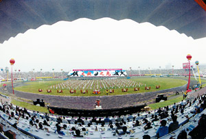 · 2000年中国·焦作(温县第六届)国际太极拳年会开幕式于昨日在河南省焦作市体育中心体育场举行(图为开幕式会场)