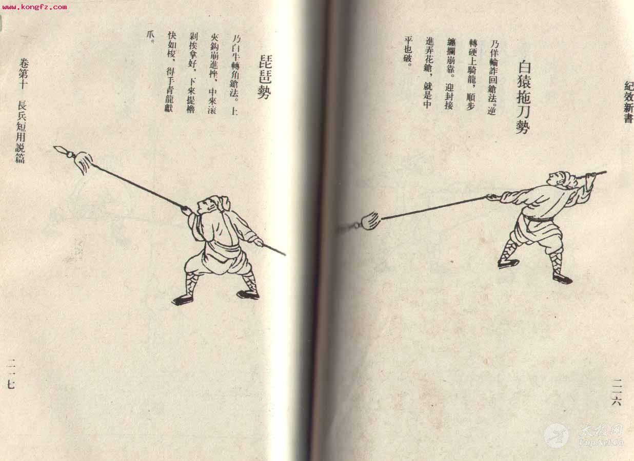 三、洗髓经 武林秘籍,《易筋》之外,尚有《洗髓经》。此经亦属达摩传授,而且比《易筋经》还要神奇。 据《易筋经》李靖序说,达摩卒后留下一口铁函,函中藏有这两本经书,「洗髓经帙,归于慧可,附衣钵共作秘传,后世罕见。惟易筋经留镇少林」。可见少林所传亦仅易筋法而已,洗髓功则为掌门衣钵之秘。李靖这篇序文是伪造的,但即使是伪作此序者也承认并不曾见过《洗髓经》。 故《洗髓经》可谓秘中之秘,历来修练之士看待这两本书,也持轩轾之见。例如玄同子藏本《易筋经》后序就说:「练易筋功行,成就已;以洗髓之功视之,犹是外功,不足以言工夫之上乘,必须进而练习洗髓,方为形神之妙道毕矣」。 少林掌门衣钵秘术,流传当然也绝少。不过据说后来慧可襌师发愿弘法,将此经翻译成中文,所以毕竟有了传本。 流传各本,内容甚为分歧,译文也颇有不同。其功法大略谓:夜中静坐,服气吐纳。五更起床后,也吐浊纳清。静坐吐纳时,舌抵上颚,咽津入腹,气归丹田。平时行住坐卧也要行功,然后再辅以按摩之法。 这样的功法,其实也甚为简单。但它跟《易筋经》相比,确实较有理趣,其〈无始锺气〉〈四大假合〉〈凡圣同归〉〈物我一致〉各篇,都不只是讲技术、操作手法,而是从宇宙气化讲起,谓宇宙因气化而成,故水火土风四大假合,人亦如此。生命暂有,终归太虚。修练者只是借假以合真,运用服气养气之法,以求长生。这样的理论,使它在各武术秘笈中显得较为深奥高妙,以致于它那极简单的功法也彷佛高深莫测了。实则其理论虽有理趣却是欠通的。若真能悟四大假合、生本虚幻,便能超脱生死关,何至于汲汲以长生久视为念?而其具体功法,则又卑之无甚高论,不过是呼吸吐纳而已。里面甚至还有一些「两手常在腹,扪脐摸下体」的动作哩。 如此功法,何以便能拥有那么高的声誉地位? 原来,圣典之所以能成为圣典,有时并不只因它本身的因素,而是因时因机的。胡适的《中国哲学史》《白话文学史》〈文学改良刍议〉本身也谈不上多么严谨深刻,议论亦多欠通,但掀起一代风潮,肇兴新文化运动,谁又能说它没有历史地位?不也有许多人迷信它,视为圣典吗? 《易筋》《洗髓》于今视之,浅陋可哂,妄谬亦甚可惊。但那是少林外家拳术在明末遭遇内家拳思潮崛起后的自我调整之作,希望吸收道家的运气行气说、呼吸吐纳功法、导引术来达到新的综合。这种综合,虽然简陋,但却成为清初迄今少林系统武术的基础,许多功法均由此衍申发展而来。此所以这两部经才会被推尊为武学宗祖,有如此崇高的地位。 四、剑经 中国兵器,以剑为尊。但后世剑法失传,剑在战阵中亦无所用,剑遂仅成为装饰性或表演性的技艺。真正讲武术的第一本《剑经》,其实乃是一部棍法谱。 这部棍法谱,同时也是我国第一部棍谱。以棍谱名为剑经,自有以棍代剑之意。剑的传统地位及作用,依作者看,是该让位给棍了。 这位作者,乃明嘉靖万历间名将俞大猷。戚继光曾任其副将,对他的棍法非常佩服,所以在编《纪效新书》时,把他这《剑经》全文收录书中,且增绘了二十四图势,以助了解。后来民国初年写《江湖奇侠传》的平江不肖生向恺然也曾注释此经,并增图势若干幅,改名《子母三十六棍法》。因此可以说这是一本不仅具有历史地位,也深受内行推崇的经典。 俞大猷于嘉靖四十年路过少林寺时,因少林棍法从唐初即擅盛名,故请求观艺。但看后颇为失望,认为其棍法「传久而讹,其诀皆失矣」。于是挑了两名僧人来教诲,要他们学成之后「转授寺僧,以永其传」。所以后世所传少林棍法,恐怕也只是俞大猷的棍法罢。 俞大猷的棍法何以能有如此高的评价?或者说,它的要诀何在? 综合俞大猷与戚继光的看法,有几点可谈: 一、棍为兵器之首:「用棍如读四书,钩刀鎗钯如各习一经」,四书既明,六经之理亦明矣。「若能棍,则各利器之法从此得矣」。 二、棍虽重要,但练棍者跳跃闪滚,多是花样,中看不中用,故棍法以实用为要:「俞公棍,所以单人打不得,对不知音人打不得者,正是无虚花法」。单人打不得,就是说棍法不是个人表演用的;无虚花法,就是说不准练者「徒支虚架,以图人前美观」。 三、使棍时,须懂得短兵长用的道理。棍不如长枪大刀,乃是短兵。短兵利在速进,要抢到近距离才能发挥作用。所谓短兵长用者,是长驱直入之意。 四、两人对阵,不是演套路、耍招数,而是要乘其机、因其势的。所以他强调:「须知他出力在何处,我不此处与他斗力,姑且忍之,待他旧力略过,新力未发,然后乘之,所以顺人之势、借人之力也」「不外乎后人发先人至一句」。 这些论点,都是武学上的至理名言。习武者卖弄气力,矜炫姿势,乃人之通病。此经所说,可谓切中要害。可惜后世武术之发展仍然是以演套路、打招数为主,每家各派,以此自鸣得意、宏展宗派。既罕实用实战之效,又跟俞大猷博采各家之精神相违(他的棍法吸收了山东河南各处教师的技法与经验),实在令人感慨。幸而,「后发先至」「顺人之势,借人之力」之原理被太极拳等内家拳派吸收而发扬光大了,否则后人对此《剑经》岂不愧煞! [page]