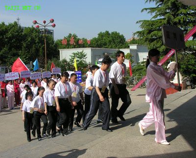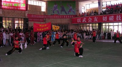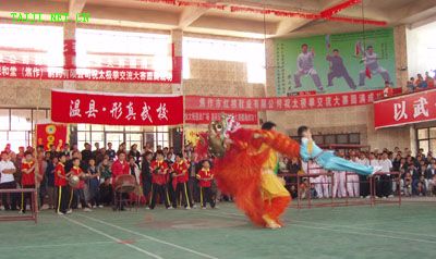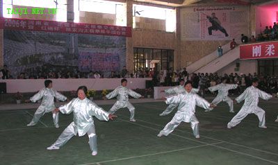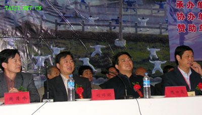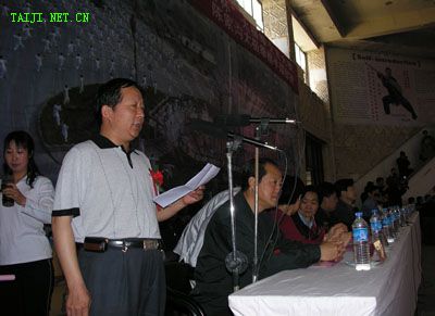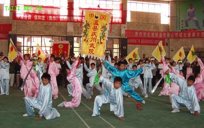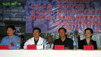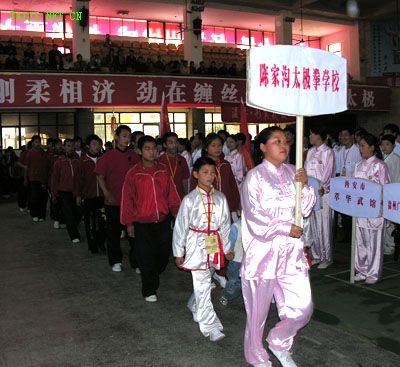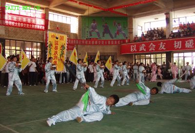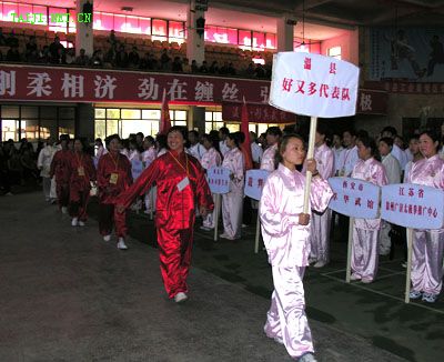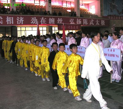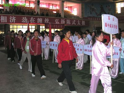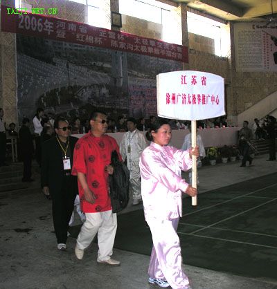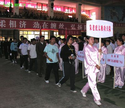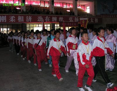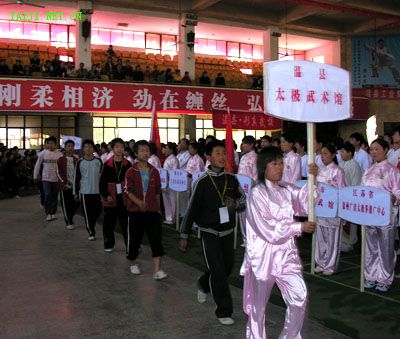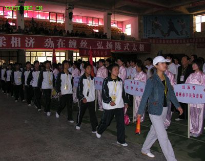 | 今天上午8:30,河南省传统太极拳交流大赛暨陈家沟太极推手擂台赛在温县太极武术馆隆重开幕!来自河南、河北、山东、江苏南京、徐州、陕西西安、宝鸡等地四十多个代表队共500多名运动员将参加此次比赛。河南省武术管理中心主任张跃敏、副主任李婕、主任助理陈沛菊、武术科科长杜金山、焦作市体育局局长刘新顺、副局长黄新江以及温县县委书记董安民、县长魏曰高、县委副书记刘同旺、副县长戚太明、体育局局长张胜利、太极大师陈正雷、王西安、陈庆州等出席了开幕式,开幕式由温县县委副书记刘同旺主持。陈家沟太极拳学校、陈家沟武术院、温县庆州武院、温县形真武校为大赛开幕时作了精彩的武术和舞狮表演。 本次大赛套路和推手比赛场地分别在太极武术馆和温县灯光球场举行。仲裁委员会陈正雷、林素朴、王西安,总裁判长李模岐、套路裁判长许亚莉、杨振国,推手裁判长崔浩澜。请看本站图片报道 入场式: