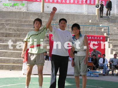 陈家沟太极拳校,陈自军、宋佳佳分别获得男子75公斤级别冠军和女子55公斤级以上冠军。其余的女子50公斤级别冠军,由庆州武院王亚伟夺得;女子55公斤级别冠军,则由有刚武校一队张祎祎获得。男子组80公斤级冠军被焦作华盛王峰夺得。