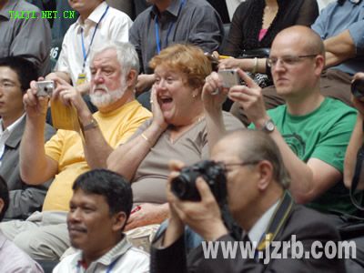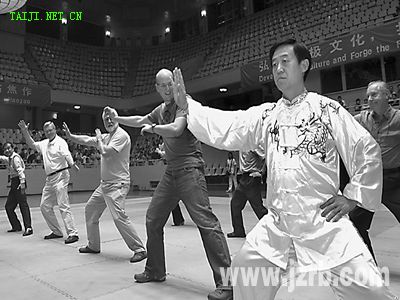 昨晚的焦作体育中心体育馆内掌声如潮,参加第一届国际地质公园发展研讨会的中外专家、学者被太极拳的魅力所折服,他们将热烈的掌声送给了表演者。演出结束后,许多中外专家、学者纷纷走到场内跟太极大师陈正雷、陈庆洲、王西安学起了太极拳。中外专家、学者正在学太极拳。