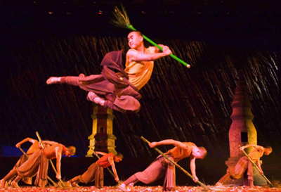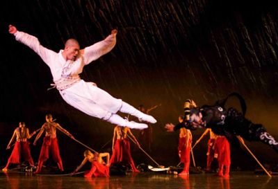观众不但能在舞蹈化的对决中看到武术打斗,而且在其他场景里还增加了九节鞭、双节棍等少林绝技。中华武术与现代舞中透出的力与美的表演,淋漓尽致地展现了中国传统武术的阳刚和舞蹈的柔情,文武结合,刚柔并济。