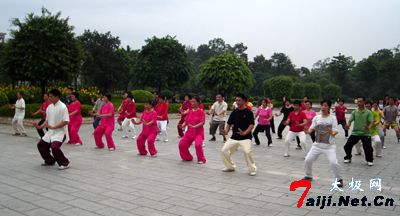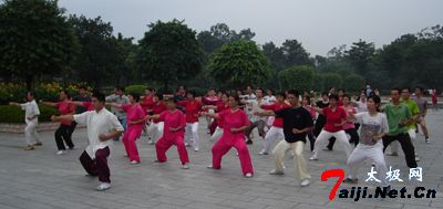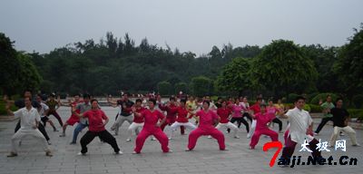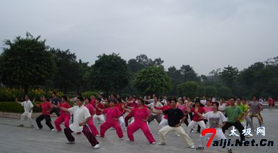 雪白的曙光和淡淡的晨雾交融在一起,点染着花果山公园里挂着雨水珠的树叶,在清晨的微风中摇晃。在喷水池前的空地上,记者看见一班太极拳的爱好者在师傅的带领下练习太极拳。他们一招一式都有板有眼,每个动作都打得很到位,引得早起的路人驻足观看。这是近日记者观察发现的一个喜人现象。 带队的师傅名叫陈志强,是陈氏十九世、太极拳正宗传人,陈家沟太极拳“八大天王”之一睿天王,现为国家武术一级裁判,陈家沟太极拳研究会会长兼总教练。据陈师傅介绍,太极拳是河南省温县陈家沟陈氏第九世陈王廷,在家传拳术的基础上,吸取众家武术之长,结合周易八卦、阴阳学说、中医经络学、导引吐纳术及力学等原理创编出的一套既符合人体生理规律,又符合大自然循环规律的一种拳术运动。太极拳是集技击、养生、健身、娱乐、益智和修性为一体的独特运动,陈氏太极拳的特点是以缠丝劲为主、以腰为轴,节节贯串、以意导气、以气运身,讲究周身一体、内外结合。在这种运动方式下经常练习,可使肾气旺盛,带脉充盈,阴阳调和,增强腰肾功能。也可调节神经系统,提高心血的交换能力,强壮筋骨,达到活血通络、祛除杂病、延年益寿之功效。还可以预防和治疗神经衰弱、心脏病、高血压、血管硬化、关节炎、哮喘、脑血栓等病。 据记者了解,太极拳是一种老少皆宜的运动,而且现在还有年轻化的趋势。在花果山公园这里锻炼的学员来自各个年龄层次,而且学习的程度也各有深浅。有的学员已经练了有段日子了,动作娴熟,对套路也很熟悉,已经练到挥洒自如,阴阳无偏,浑然一圆的境界了;有的学员是刚加入的,处于摸索磨练阶段,还得经过一番苦功夫方能修成“正果”。虽然他们练习的时间有长有短,但相同之处是他们对太极拳的满腔热情。每天坚持早起进行锻炼,风雨无阻。有位学员还向记者说她以前身体状况不佳,总是犯头晕的毛病,而且头发干枯稀少,缺乏亮泽。后来经朋友介绍她开始练习太极拳,每次练完拳,出一身汗后,她都觉得轻松无比。经过一段时间坚持不懈的锻炼,她明显发现自己以前的老毛病都不见踪影了,而且头发也比以前乌黑,整个人变得更加精神,容光焕发。练太极拳后的她比以前自信,生活也因太极拳而更加丰富多彩。 她认为太极拳这项运动应该要发扬光大,让更多人了解它,感受它,领会太极拳带来的超然脱俗。她还说在她有生之年,都会继续练太极拳,因为她觉得自己的生活已经离不开太极拳了。