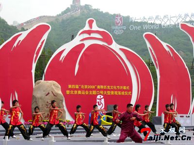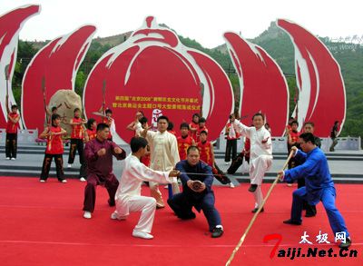 | 2006年6月23日上午,太极拳发源地——河南温县陈家沟“八大天王”陈志强、张福旺、陈冲、陈大虎、陈二虎、陈自强、王战军以及陈家沟太极拳学校的学生一行30余人在温县体育局局长张胜利的带领下,参加了在北京八达岭长城举办的“第四届2008奥林匹克文化节开幕式”,并做了精彩表演。他们的精彩表演,赢得了与会领导和观众的阵阵掌声。