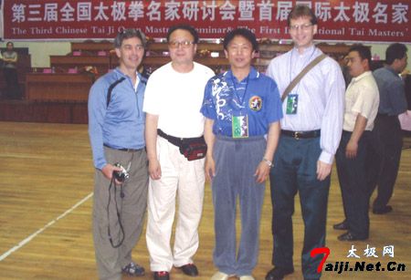 4日晚上是理论交流大会,各派演讲良莠不齐,听到代表武式理论丁新民先生的演讲时令我茅塞顿开,他不仅武功好,理论水平也高人一等,把看似复杂的内功法以很简单的生理运动法告诉大家,使大家豁然开朗,没有不可知,只有功不成的,这是太极奥妙之所在,下来一问武式太极传人中大多受过高等教育,吴文翰先生是解放前的大学生一直在领导岗位,丁新民先生也是一所大学的主要领导,是研究哲学的。难怪他的拳法和理论是那样的深不可测,耐人寻味。 5日是技击表演,先是由陈式的几个名家表演了推手,后由各国以及其他门派的选手进行推手类的表演,。武派太极的三对表演的确又一次让我震撼。先是一个叫高连成的表演。他和其185厘米高的弟子在表演中,跌、拿、摔、打,招招具体,法法相连,没有一点造作。第二个是叫陈树义的表演的武式“浪采花”,只见他舒展自如,摔跌流畅,腾空而起毫无停滞之感。大会最后一个表演的是丁新民先生的武派“抛跌术”,只见他轻舒猿臂,闪转腾挪,进退顾盼,没有一般推手的来往复反的轻柔,也没有一般散打硬碰硬的血腥碰撞。只要一碰面对手就被抛跌出去了,其身法之灵巧,技术之娴熟,匪夷所思,很是实用,但也不失为很美的技术。让人确实受益非浅,丁新民的表现让每个参会的人感到了太极拳文化的深浑厚重。是高超的武学技艺。套路、理论、技击都以很高的水平于一身。让所有参会的人都感到了意外。正如英国搏击功夫总会会长说,这次来中国见到丁先生就足矣。由此可见丁先生的中国功夫赢得了世界功夫界的欣赏和认可。表演下场后,留名的,留影的,交流的把丁先生围的水泄不通。我也认为花多少钱也值得一看,不冤枉,很超值,也希望能多举办这样货真价实的表演、比赛、宣传、交流。让国人能赏析到真正的武学文化。也真诚的希望象丁新民先生以及武派太极各位大师的传授一些真功实法。让好的东西能好好地传下去,千万别让老祖宗的好东西在我们这一代失传。