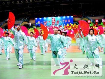 | 日前,在2008年朝阳区全民健身启动仪式上,200位身着翠绿色练功服的健身者表演的太极功夫扇吸引了全场的目光。只见他们和着铿锵有力的乐曲,人手一把红扇,伴随着太极动作时开时合。他们时而站立展扇,时而又震天呐喊,一时间绿衫红扇交相辉映,功夫扇的开合声与呐喊声此起彼伏。 如此精彩的表演,参与者都是来自朝阳区三元活动站的居民,这些平均年龄50岁的太极功夫扇爱好者,把中国功夫演绎得淋漓尽致。据了解,中国太极功夫扇是在太极拳的基础上,融合了长拳的内容,运用太极拳杨式、陈式、吴式等动作,使武术动作、中国功夫和歌曲旋律巧妙地结合。 据了解,太极功夫扇是北京市老年体协为支持北京申办2008年奥运会、大力开展中老年人群体育锻炼而创编的。推广以来,因其套路简单、动作优美、场面壮观,受到了中老年健身者和各区县活动站的青睐。目前,各区县均有不同规模的太极功夫扇表演队,各活动站利用光盘自学和教练传授教学等途径积极推广,使越来越多的中老年健身者成为太极功夫扇的爱好者。 |
