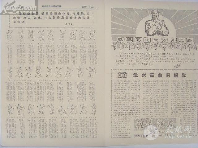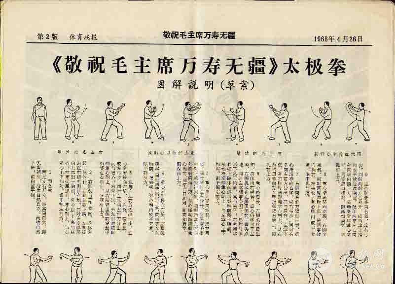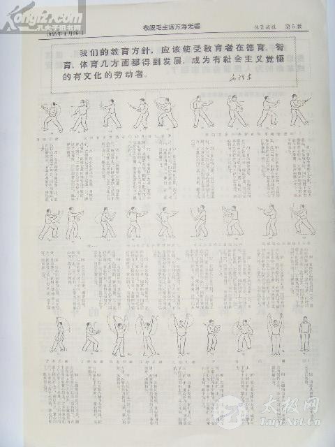 [page] 二、1950年,太极拳视频第一人董英杰又录制了一部太极拳视频。  董英杰1950年视频链接:http://v.taiji.net.cn/player.php?id=84 董英杰四十年代视频链接:http://v.taiji.net.cn/player.php?id=83 三、主席提倡打太极拳  1952年6月,中央人民政府主席毛泽东为中华全国总会第二届代表大会写了"发展体育运动,增强人民体质"的题词,并号召凡能做到的都要提倡"做体操、打球类、跑跑步、爬山游水、打太极拳。  新中国成立伊始,百废待兴。历史悠久的太极拳以及内涵广博的中华武术像其他一切一样面临着不可知的发展前景。 在这种情况下,主席为武术事业的健康发展,特别是太极拳的发展指明了方向。毛主席的话表明了党中央和新中国政府对太极拳以及武术的态度,把发展武术运动提到了新中国体育工作的日程上来。 新中国创立初期,在党中央和毛主席的倡导鼓励下,太极拳在工人、农民和学生中很快得到了开展,迎来了它的春天。 四、1956年2月,《简化太极拳》由人民体育出版社出版。24式隆重推出。  李经梧二十四式简化太极拳视频截图,视频链接:http://v.taiji.net.cn/player.php?id=469 1956年2月,中华人民共和国体育运动委员会运动司武术科组织多位太极拳专家,经过广泛深入的调研,在传统太极拳的基础上,以杨式太极拳为动作素材,从原套中汲取典型动作,择取24个不同的姿势,删繁就简,编串而成易学、易练、易记的24式简化太极拳。该套路按照由简到繁、由易到难的原则,在集中主要结构和技术内容的同时,改变了过去过多的重复动作,便于掌握。  24式的推出,使古老的太极拳赶上了时代的步伐。太极拳真正意义上进入到老百姓的日常生活,也从此在真正意义上实现了它的健身功能。简化24式太极拳的出台拓展了太极拳发展空间的深度和广度,促进了太极拳的广泛普及,描绘出太极拳无可限量的发展前景,是太极拳运动史上一个划时代的革新。24式自公布之日起,到目前为止,保守估计,已有100多个国家的十几亿人练过。 [page] 五、1960年,有关方面为牛春明拍摄太极功夫记录片《万年青》。  牛春明(1881-1961),亦名镜轩,满族,北京人,杨式太极拳重要传人推广者。早年任北京市消防队队医,从杨健侯学太极拳见其勤恳好学,1902年命牛春明 拜澄 甫 公为师, 由健侯 师祖代子传艺,赐名,镜轩 ” 。1912年,牛春明在中央公园襄助澄 甫 公授拳;1914年,在杨家武馆任助教。杨健侯过逝后,牛春明曾一路行医,至山西大同、河北石家庄、江西抚州等地,寻师访友。1920年,牛春明南下宁、沪、杭,曾在上海哈同路68号设立太极拳馆,但不久即离沪去浙江,授拳于兰溪、永康一带。后任职杭州国术馆、继任杭州国术馆教务。又设立牛春明太极拳社。解放后,牛春明执教于浙江医科大学、浙江省军区医院、浙江大学。1960年,有关方面为牛春明拍摄太极功夫记录片《万年青》。传其衣钵者为商世昌、潘志诚、顾启欧、瞿文、贺鸣声、丁水德等。其女牛筱灵在香港撰写《牛春明太极拳》一书。 视频链接:http://v.taiji.net.cn/player.php?id=460 六、语录下的太极拳 在文革的十年中,太极拳等许多优秀的拳种不得不以一些较为特殊的形式出现。