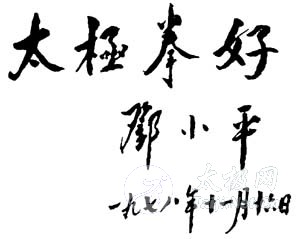 陈照丕“语录拳” 上个世纪60年代中后期,正是极“左”思潮泛滥的时候,“文化大革命”中的中国充满动荡,到处都在“破四旧”,批斗“牛鬼蛇神”。当时在陈家沟教授太极拳的陈照丕老人也受到了冲击,教拳被当作“四旧”批判。在这种环境下,陈照丕老人被迫编一套语录拳,教授太极拳爱好者。 [page] 七、1976年,杨振铭视频杨家录制视频第一人。  杨振铭(1910-1985),字守中,河北永年县人,杨式太极拳杰出人物和推广普及者。自幼随其父杨澄甫学拳, 经过严格训练,得其真传,操拳终生。 19岁后在南方教太极拳, 后随父到上海、广州等地 授拳。后来移居香港,在海外弟子众多,夫人梁帼义、女帝儿、玛丽、伊丽和拜门弟子有叶大德、朱振舜、朱景雄等得其真传。现香港永年太极拳协会马伟焕亦得其真传。杨振铭久居香港授拳,著有《双人图解太极拳用法及变化》 (1962),《PRACTICAL USE OF TAIChi chuAN》 (1976年波士顿及香港英文本)。 杨守中视频链接:http://v.taiji.net.cn/player.php?id=479 八、1978年11月16日,中共中央副主席、国务院总理邓小平在会见日本友人时欣然挥毫,写下"太极拳好"。  邓小平的题词给太极拳带来了新的生机,标志着我国的传统武术在历经十年浩劫的停滞不前之后,经过风雨的洗礼,进入了蓬勃发展的新阶段,太极拳的春天也随之而来了。 九、太极拳名家视频录制  1978年体育学院为了保存历史资料,邀请陈照奎、田秀臣、雷慕尼、冯志强、李忠荫、肖庆林、刘高明等拍摄电影资料。当时拍摄了83式太极拳和71式炮捶,陈照奎表演了陈式太极拳的单式发劲的动作。北京体院拍摄的演职员分别为: 陈式太极拳 田秀臣:http://v.taiji.net.cn/search.php?type=video&tag=%E7%94%B0%E7%A7%80%E8%87%A3 雷慕尼: http://v.taiji.net.cn/search.php?type=video&tag=%E9%9B%B7%E7%A9%86%E5%B0%BC 杨式太极拳 刘高明: http://v.taiji.net.cn/player.php?id=599 武式太极拳 欧阳方: http://v.taiji.net.cn/search.php?type=video&tag=%E6%AC%A7%E9%98%B3%E6%96%B9 吴式太极拳 李秉慈 : http://v.taiji.net.cn/search.php?type=video&tag=+%E6%9D%8E%E7%A7%89%E6%85%88 孙式太极拳 孙剑云: http://v.taiji.net.cn/search.php?type=video&tag=+%E5%AD%99%E5%89%91%E4%BA%91 1979年,上海太极拳界老前辈珍贵录像,该录像内容为: 陈式太极拳 顾留馨:http://v.taiji.net.cn/search.php?type=video&tag=%E9%A1%BE%E7%95%99%E9%A6%A8 杨式 傅钟文:http://v.taiji.net.cn/search.php?type=video&tag=%E5%82%85%E9%92%9F%E6%96%87 24式简化 濮冰如:http://v.taiji.net.cn/search.php?type=video&tag=+%E6%BF%AE%E5%86%B0%E5%A6%82 吴式 吴英华:http://v.taiji.net.cn/search.php?type=video&tag=%E5%90%B4%E8%8B%B1%E5%8D%8E 武式 郝少如:http://v.taiji.net.cn/search.php?type=video&tag=+%E9%83%9D%E5%B0%91%E5%A6%82 孙式 王禧奎:http://v.taiji.net.cn/search.php?type=video&tag=+%E7%8E%8B%E7%A6%A7%E5%A5%8E 太极杆子 顾留馨 张玉:http://v.taiji.net.cn/search.php?type=video&tag=%E9%A1%BE%E7%95%99%E9%A6%A8 对剑 濮冰如与学生:http://v.taiji.net.cn/search.php?type=video&tag=+%E6%BF%AE%E5%86%B0%E5%A6%82 推手 顾留馨与唐仁香 郝少如与学生:http://v.taiji.net.cn/search.php?type=video&tag=+%E9%83%9D%E5%B0%91%E5%A6%82 陈式太极剑 何炳泉