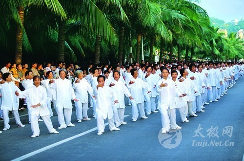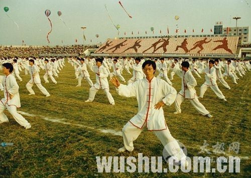 1983年9月,在上海举行了第五届全国运动会,有29支代表队的189名运动员参加了武术表演。值得一提的是,有5000名来自社会各界的太极拳爱好者聚集上海人民广场,共同表演太极拳。 在现代文明充斥的大都市上海,多达5000人集体演练太极拳,这本身就说明太极拳这一古老的运动项目已经深深地扎根于现代社会,贴近现代都市人的日常生活,深入人心。 同时,这次表演开集体演练太极之先河,开拓了太极拳演练的新视野、新思路,开辟了太极拳表演的新模式、新形势,给人耳目一新的感觉。 十四、三年苦心在挖整  1979年,国家体委发文,倡议进行武术挖掘整理工作。1983年到1986年在国家体委武术挖整领导小组的统一部署下,在各级体委武术挖整组的积极配合下,武术挖整工作在全国范围全面展开。先后动员了全国8000余名专职武术工作者和业余武术爱好者,开展了我国武术发展史上空前的"普查武术家底、抢救武术遗产"工作。 "取其精华,去其糟粕"是挖掘整理、继承发展包括太极拳在内的中华武术的一贯方针。 从1983年开始的自上而下进行大规模的挖掘整理工作,历时3年,对全国的武术现状进行了一次全面的普查,并对传统技艺进行挖掘整理,以避免失传。广大武术工作者为此付出了艰辛的劳动,热心的人民群众与老拳师们也纷纷献技献物,把家传珍宝无私地奉献出来。 1986年,武术挖掘整理领导小组通过3年的努力,取得了丰硕的成果,初步查明流传各地的"源流有序、拳理明晰、风格独特、自成体系"的拳种129个;各省市编写的各拳种理论、技术传播发展的典籍651万多字;录制70岁以上老拳师艺395小时;收集有关文献资料482本,古兵器392件。其中很大一部分是有关太极拳的珍贵史料,获得一批极有价值的太极拳技、拳理的祖传孤本、善本、抄本,成为继承、发展太极拳的宝贵资料。 [page] 十五、1984年首次国际太极赛  视频链接:http://v.taiji.net.cn/player.php?id=2918 1984年4月22~25日,由湖北省体委主办的"国际太极拳(剑)邀请赛"在武汉举行,来自日本、加拿大、危地马拉、新加坡、美国以及香港等18个国家和地区的70多名选手与中国近百名选手参加了表演比赛、切磋技艺。 虽然这次比赛由湖北省体委主办,但是中国武术协会相关人士均到场,这是官方而后一系列行动的启动,是次年搞国际武术邀请赛的前奏。 整个比赛竞争激烈、气氛热烈,成为太极走向世界的一声春雷。 十六、太极走向单项赛 1984年9月,全国太极拳、剑邀请赛在黑龙江省哈尔滨市举行,来自全国各地10个省市近40名优秀太极拳选手参加了陈、杨、武、吴、孙五式以及48式、88式7个项目的比赛。这次比赛为太极拳、剑脱离其他武术项目,走向单列比赛打下良好而坚实的基础。 太极推手原来放在对抗性项目竞赛中,与武术散手同时比赛,从这次比赛开始,与太极拳密不可分的太极推手终于归于太极拳系列中。 这次太极拳、剑邀请赛是建国以来武术运动的第一次专项比赛,是一个良好的开端,它极大地推动了太极运动在全国的普及和发展,把尽快提高太极拳的技术水平和理论水平提到了议事日程上来。 十七、表彰千名辅导员 1984年,千名优秀武术辅导员的表彰奖励大会在北京隆重举行。 为了推动群众性武术活动的进一步发展,国家体委在全国开展了"千名武术辅导员"评选活动。评选出的优秀辅导员中有很大一部分是从事太极拳教学的。这次表彰在全国范围内掀起了一股群众习武的热潮,太极拳更是受到越来越多人的喜爱。各种形式的武术馆、校、站等相继成立,成为开展太极拳在内的武术活动的基地。 十八、正式成为单项赛 1986年,国家体委将太极拳、剑、推手列为全国正式比赛项目,并决定每年举行一次比赛。广大太极拳爱好者们终于有了可以展现自己拳技的一片天地,太极拳这项内涵与外延同样广博的运动终于有了自己的单项比赛,这无疑更加有利于太极拳的健康发展。 十九、中日太极拳大交流  1988年4月,日本太极拳联盟组织日本百名太极拳爱好者到北京参加了中日太极拳比赛交流大会。紧张热烈的比赛之余,中日太极拳爱好者云集天坛,在宏伟的祈年殿前集体演练太极拳。 中国与日本一衣带水,中国的太极文化更是受到日本人民的青睐。早在1984年第一届全日本中国武术表演大会上,中国武术运动员便以技惊四座的表演令日本观众大饱眼福。1987年3月31日~4月7日,首届中日太极拳比赛交流大会在北京举行。中日之间的武术交流活动特别是太极拳的交流活动频繁上演。日本,成为除中国以外开展太极拳运动最广泛的国家。全日本太极拳联盟,成为国外规模最大的太极拳组织,为太极拳在日本的发展起了不容忽视的作用。 是太极的魅力,使来自不同国家有着不同文化习惯和历史传统的人能够携手在一起。太极拳,把中日两国人民紧紧连接在了一起。 二十、传统太极进竞技  1988年,随着武术运动的发展,为适应国际、国内武术交流比赛活动的需要,国家体委武术研究院组织有关专家,依据传统性、科学性、竞赛性的原则,将陈式、杨式、吴式、孙式编制成"四式太极拳竞赛套路",突破了民间传统太极与竞技之间的隔阂,真正把传统武术纳入竞技体系。1997年,武式太极拳竞赛套路也随之问世。 [page] 二十一、1991年起,太极拳发源地温县连续举办了多届太极拳年会。  12月,原国家体委下发《关于开展全国“武术之乡”评选活