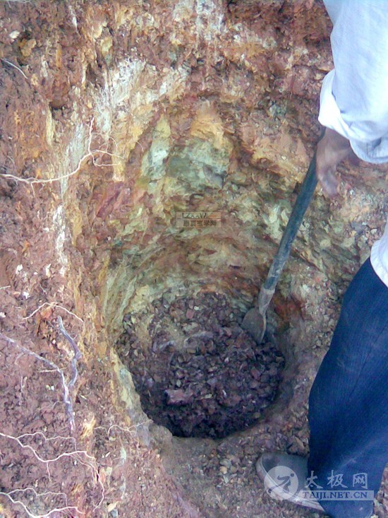 太极土,又叫五色土、太极晕。在风水学中,通俗派认为指真龙穴,即在一个龙穴结穴点处,必有五圈浓浅色系各不同的颜色,且如太阳周包裹,层各一色,浓淡浅深,璀璨夺目,有如日之周围,发生重轮之势,一圈之外,复套一圈,故曰:“晕”;“太极”指穴理而言。盖两仪、四象、八卦,至此方显,如水到穷时太极明,故穴晕而以太极冠之也。 《五星捉脉正变明图》云:“穴场既定,先须辨其大极圆晕。若见隐微之间,圆晕分明,则性气内聚,是为真穴,无此则非。若已经开垦,遇者须凭目力详审之,若见二、三半圆如初生月样,是名天轮,更为难得。” 廖瑀《四象葬法》:“穴内圆晕、乃生气凝聚灵光显露之处。开茔宜在晕内,不可锄破,否则生气泄漏,灵光销铄,虫蚁入圹,水泉侵棺,子孙贫寒。” |