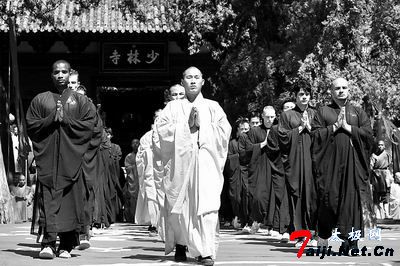 9月9日,由少林文化传播有限公司、深圳卫视等多家单位共同打造的“中国功夫之星全球电视大赛”出关仪式在河南嵩山少林寺举行。来自12个国家和地区的36名“功夫之星”经过9天的闭关修炼,在嵩山少林寺正式出关。 上午11时,伴随着千年古刹浑厚、悠远的钟声,少林寺的大门徐徐打开,少林寺方丈释永信率众僧走出寺门。接着,在少林十八罗汉的护送下,在全球选出的36名选手依次以出众的武打造型出关亮相。少林寺方丈释永信亲手为他们颁发了出关证书。受邀参加观礼的太极、峨眉、武当、梅花、八极、五祖、翻子等12大武林门派的“掌门人”为功夫之星赠发象征荣誉和尊严的“群星剑”,寓意中国武术传统文化的世代传承。 在闭关的9天里,选手与少林寺的武僧同吃、同住、同练,十八罗汉分别对36名选手进行指导。9天里,选手们潜心钻研中国功夫,提升武功,提高武学修养。根据选手们在少林寺闭关的综合评比,以及来自武当、少林等多位武术名家的鉴定,9名来自中国、美国、俄罗斯等国家和地区的选手成功晋级18强;而此后的古丈选拔将再次决出另外9强。他们将参加国庆节期间在深圳举行的总决赛,最终决出“武林盟主”。 □记者杜小伟文图 在十八罗汉的护送下,36名功夫之星依次出关