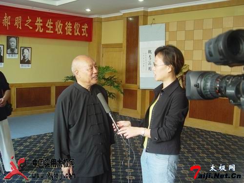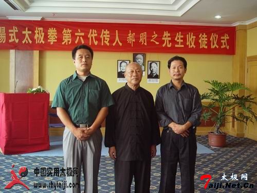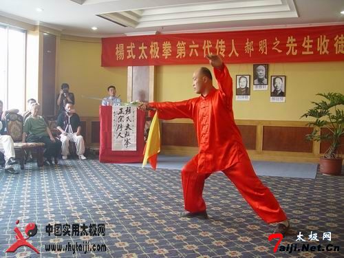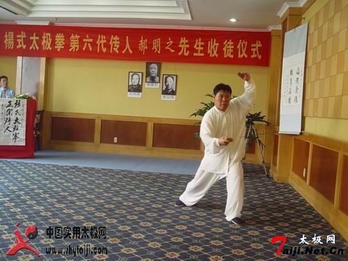 | 今天160余名太极拳爱好者欢聚一堂,参加著名太极拳家、杨式太极拳第六代传人—郝明之先生的收徒仪式,郝先生系济南市杨式太极拳研究会会长,师承杨式太极拳第五代传人刘仲桥先生;郝明之先生习拳五十多个春秋,在继承传统的基础上,经多年细心揣摩,形成舒展大方、浑厚沉稳、气势磅礴的拳架风格,被录入《中国武当武术家大辞典》,先生性情和善、为人忠厚、在武林界德高望重、深得弟子和学生们的爱戴,为弘扬太极文化、普及全民健身运动,根据众多太极拳爱好者的迫切要求,为满足部分从学拳者的要求,经先生经年考察,和弟子们的慎重推荐、筛选,今天有46名新人拜师入门。