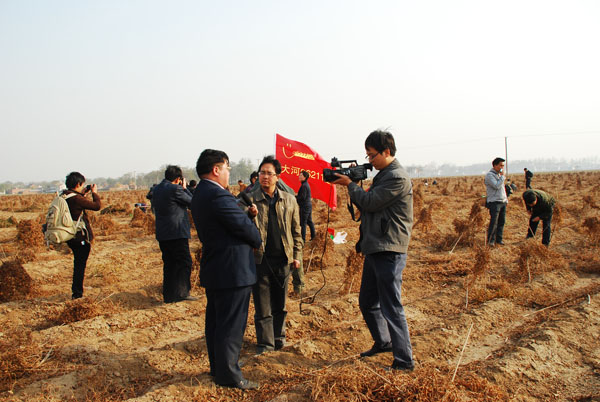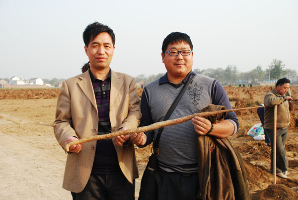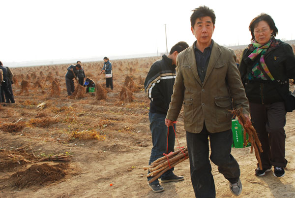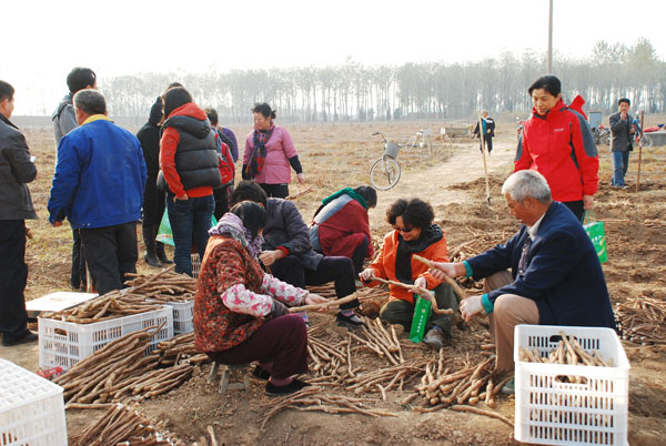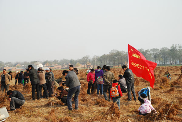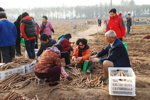 | 今天上午,由河南省供销社和大河网组织的网友温县采风——游陈家沟,挖铁棍山药活动在温县举行。上午,一百多名网友从郑州出发,分乘两辆大巴,首先到太极拳发源地陈家沟参观了太极拳祖祠,领略博大精深的太极文化。下午,到怀山堂生物科技股份有限公司(伟康公司前身)铁棍山药种植基地采挖山药。