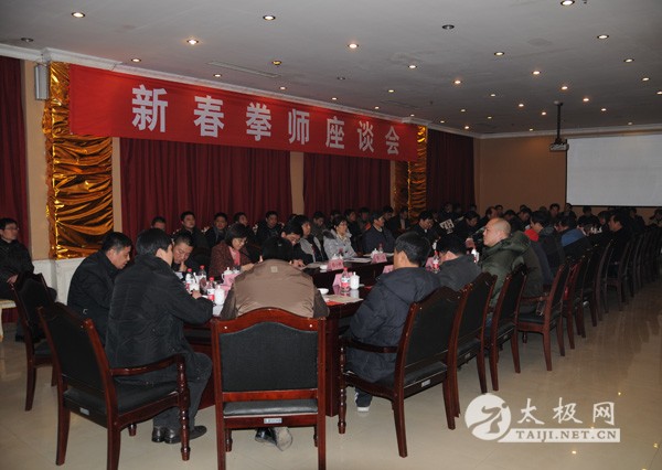 2月15号下午,温县召开新春拳师座谈会。县领导魏曰高、李英杰、牛俊虎、郑小林、魏大海、霍晓丽与太极拳大师陈正雷、朱天才、王西安、陈庆州、陈小星、陈照森、陈伯祥、和有禄等全县一百多位拳师欢聚一堂,围绕如何做大做强太极拳事业这一议题展开座谈。河南省体育局原局长、省武术协会主席张振河、省陈式太极拳协会副主席佟昌亚、省武术运动管理中心主任助理陈沛菊、焦作市体育局副局长李立、原温县政协主席史绍文出席座谈会。 近年来,温县以陈家沟建设为重点,不断加大太极拳开发力度,完成了《陈家沟太极拳文化旅游产业园区总体规划》编制,建成了太极拳祖祠、祖林、文化园、博物馆等景点,引进了总投资20亿元的太极拳开发项目,并被确定为省重点项目,陈式太极拳被列为首批国家级非物质文化遗产,温县被命名为“中国武术太极拳发源地”、“中国太极拳发源地”和“中国太极拳文化研究基地”。