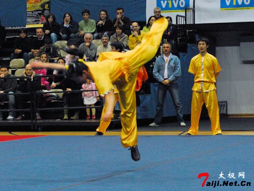 中国驻米兰总领馆张利民总领事、周健领事、摩德纳市市长、市政主要官员、意大利奥委会武术功夫联合会主要负责人应邀出席,摩德纳的华侨华人代表、意大利友人1千多名观众同时观看了表演。 本次中国武术代表团由历届全国冠军赛的冠军组成,向观众奉献了一台中华民族最优秀的魂宝。武术运动员为观众展示了长拳、南拳、太极拳、太极剑、醉剑、双鞭、棍术、枪术、刀术、八卦掌、猴拳、对打等各门绝技。 团员们的一招一式,或刚劲有力、或绵里藏针、或气势如虹、或行云流水,伴着美妙的民族和西洋音乐,把中国传统的武术文化,演绎得淋漓尽致,令观众如痴如醉。阵阵喝彩和掌声,不断把表演推向高潮。 很多观众表示,他们从未看过这样高水平的武术表演。这次中国武术访问团阵容强大,高手云集,表演内容丰富、门类齐全、技艺精湛,为中意文化年再添亮点。(记者 博源)