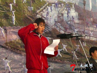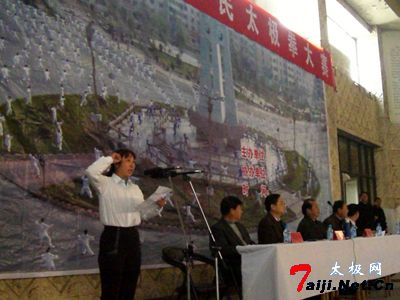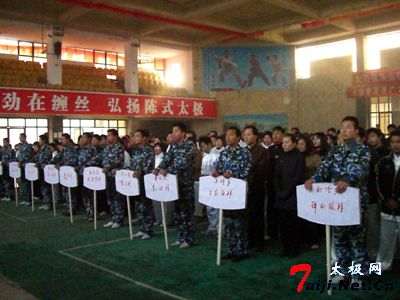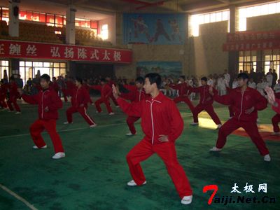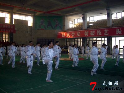 | 今天上午,由温县人民政府主办、温县体育局承办的“2006温县农民太极拳大赛”在太极武术馆开幕!共有13支代表队参加此次比赛,本次比赛的目的旨在全县范围内大力推广普及太极拳。太极名师陈素英、陈桂珍、陈二虎担任本次大赛的裁判工作。