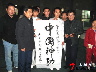 陈家沟位于河南省焦作市温县城东南的清风岭中段,距焦作市区35公里,之所以称之为“太极之乡”,不仅是因为黄河与洛河交汇孕育出太极阴阳文化,更因为在这里诞生了风靡世界的武术精粹———太极拳。太极拳是明朝末年陈家沟村民陈王廷,依据祖传拳术,汲取民间诸优秀拳种之精华,结合导引、吐纳术、中医经络学创编的一种新的内功拳法,按阴阳转换之意取名太极拳。但是,当走进黄河岸边这座普普通通的小村庄,我们依然很难相信这里就是蜚声中外的太极拳发祥地———陈家沟。 这里的一草一木、一房一舍都透着怀川平原特有的质朴,只是村里的汉子们显得更加健壮,姑娘、媳妇们更加热情和勤劳。每天,这里或多或少都有一些参观、游览的人,但面对这普通的村庄、普通的庄稼人,他们心中少了一些陶醉,多了几分遐想、几分思索、几分敬仰。 在陈家沟,远道而来的徐州太极拳爱好者见到了陈氏十九世太极拳嫡宗传人、享誉海内外的太极拳大师陈小星。通过他的介绍,记者了解到,太极拳不仅树立了焦作的新形象,而且已成为焦作的象征。目前,焦作市有10万人练习太极拳,其中对太极拳进行研究和探索的有2000多人。温县有200余人以教拳授拳为生,100余人在全国武术界有重大影响,20人在世界上有重大影响,5人为太极拳大师。陈家沟共有2300多人,80%的人练习太极拳。也许是因为陈家沟是太极拳的发祥地,每年来这里学拳的人数以千计,其中有很多外国人。 应大家的要求,陈小星还现场演练了陈氏太极拳,其一招一式如行云流水、赏心悦目,观者无不为之叫绝。随行的国家一级美术师、徐州书画院名誉院长马奉信兴之所至,当即书写“中国神功”四个大字赠与陈小星大师。陈小星欣然接受,也向徐州太极爱好者表示,以后有机会去徐州传授技艺。