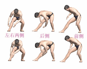 拍下肢分为三个区域:左右两侧、后侧与前侧。 一、拍大腿和小腿左右两侧 1.自然弯腰,左腿微曲,右腿在右前方横开伸直,重心大部分放在左腿,两手掌心相对,轻拍大腿和小腿里外两侧,掌心着力,手指配合掌心用力。拍2分钟,然后换另一条腿拍。2.适应后可以适当增加拍打的力度,本动作主要拍打区域:小腿左右两侧。 二、拍大腿和小腿后侧 1.右手掌心轻按住右膝盖,左手掌心轻拍大腿和小腿后侧,掌心着力,手指配合掌心用力。拍2分钟,然后换另一条腿拍。2.适应后可以适当增加拍打的力度,这套动作主要拍打区域:腘窝和小腿后侧。拍腘窝的时候,右腿要伸直一些让腘窝展开以方便拍打。小腿后侧位置是下肢静脉曲张的主要症状区域,经常拍小腿后侧有助于促进气血循环,预防和缓解下肢静脉曲张。