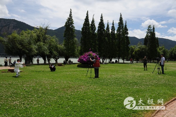 下午李小华带我们到滇池去游玩。滇池位于昆明市南的西山脚下,其北端紧邻昆明市大观公园,南端至晋宁县,历史上这里一直是度假观光和避暑的胜地。滇池古名滇南泽,又名昆明湖,距昆明市约20公里。滇池东南北三面有盘龙江等20余条河流汇入,湖水由西面海口流出,经普渡河而入金沙江。形似弦月,南北长39公里,东西宽13.5公里,平均宽度约8公里。湖岸线长约200公里;湖面面积300平方公里,居云南省首位,湖水最大深度8米,平均深度5米,蓄水量15.7亿立方米,素称“五百里滇池”,是中国第六大内陆淡水湖。 到达海埂公园,车子还没有停稳,李主席和黄秘书长这两个摄影狂就忙不迭的拿照像机支三角架,一边忙活还一边不停的念叨,太漂亮了,太美丽了!摄像和摄影的都忙活起来,都在不停的按动快门,天也美,湖也美,我们的太极拳师李小华的拳姿更美。在湖光山色的陪衬下,李小华一套太极拳老架打得是刚柔相济,连绵不断、行云流水。赢得了游人的啧啧赞叹。 滇池 李小华拳姿 |