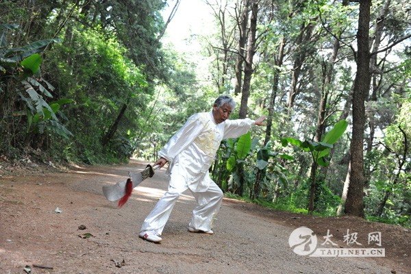 刘胜元老先生在刘忠维曾经闭门练拳的道班门口舞起春秋大刀