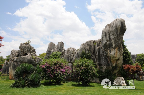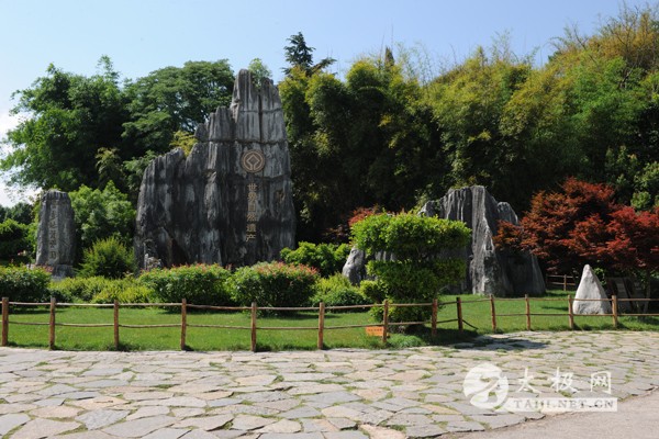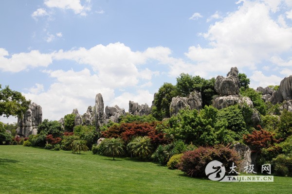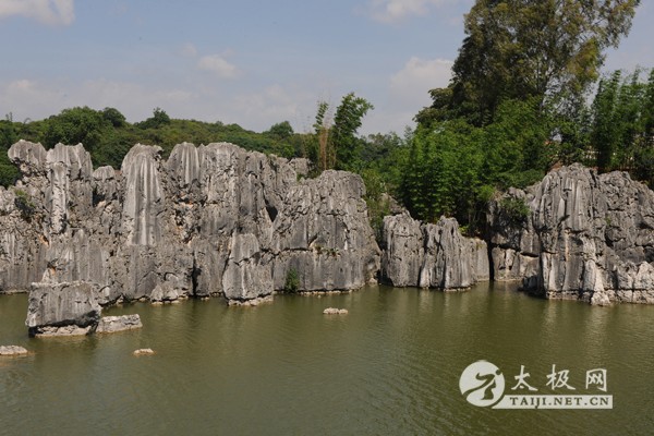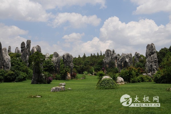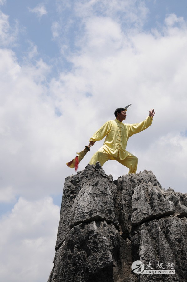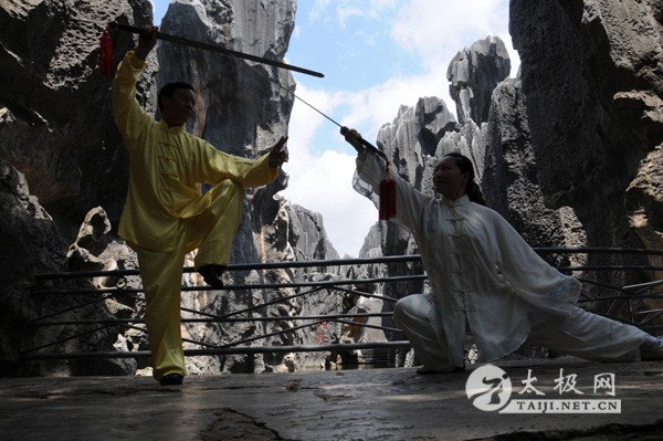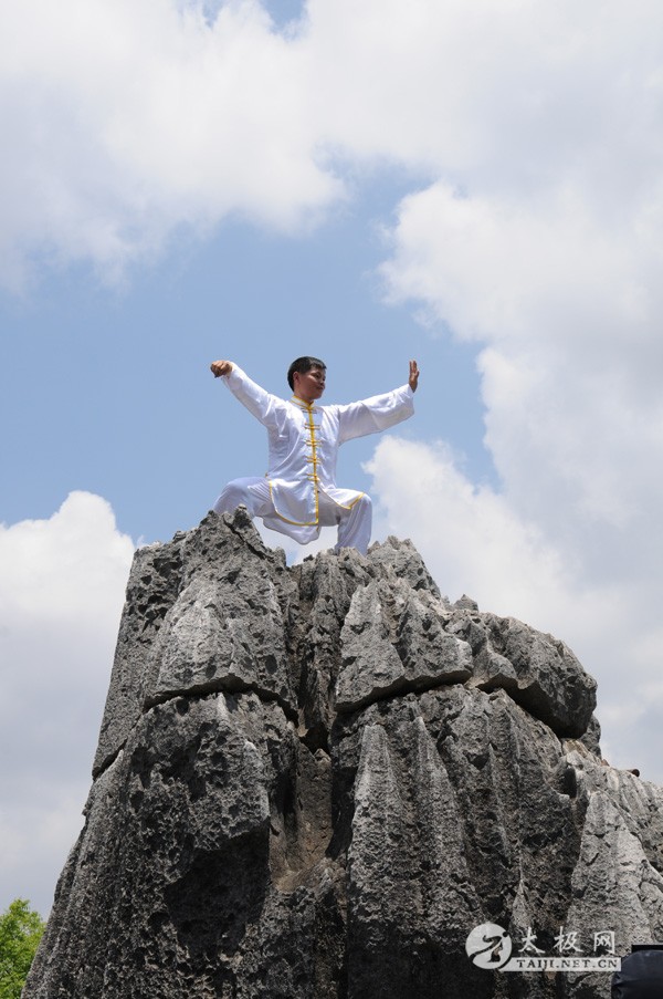 刘忠维、曾加华、李小华、李强华、吴征祥在石林演练太极拳