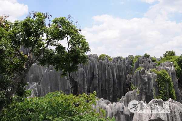 石林风景名胜区,由大、小石林、乃古石林、大叠水、长湖、月湖、芝云洞、奇风洞7个风景片区组成。全县共有石林面积400平方公里,是一个以岩溶地貌为主体的,在国内外知名度较高的风景名胜区,被人们誉为“天下第一奇观”。 所谓岩溶地貌,也叫喀斯特地貌,是指地表可溶性岩石(主要是石灰岩)受水的溶解而发生溶蚀、沉淀、崩塌、陷落、堆积等现象,而形成各种特殊的地貌——石林、石峰、石芽、溶斗、落水洞、地下河,以及奇异的龙潭,众多的湖泊等,这些现象总称喀斯特(因南斯拉夫西北部喀斯特高原最典型,故名)。我国的云南、贵州、广西、广东、福建、四川等省、区都有分布,其中发育得最好、最美的石林当首屈一指。1966年,中国第2次喀斯特学术会议建议将“喀斯特地貌”改为“岩溶地貌”,故在中国又叫岩溶地貌。