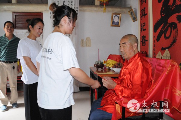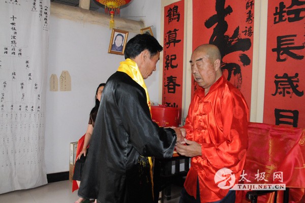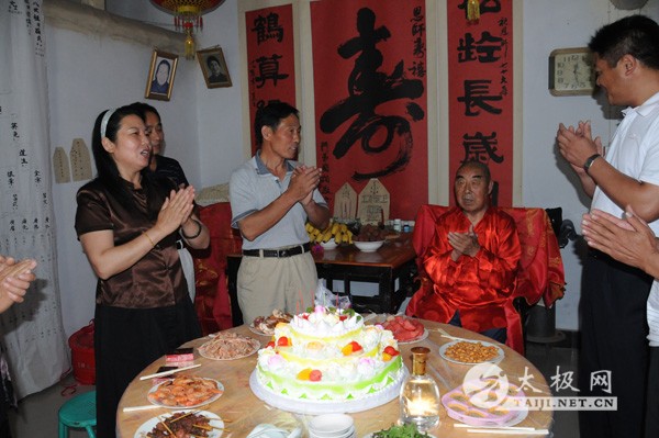 父女交流拳艺 辅导弟子王宗明 敬香 王宗明叩拜恩师 向弟子颁发传承书 向弟子颁发传承书 师徒合影 师徒合影 生日快乐 晚辈祝寿 全家福 陈根全与弟子和父亲合影 新疆陈家沟太极拳馆馆长陈全胜专程从新疆赶来祝寿 |