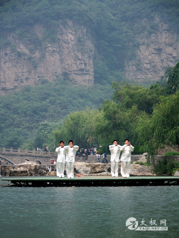 云台山景区在碧水之上搭起八卦台,并邀请拳师为游客定期表演,在享受自然风光的同时领略太极魅力 两位拳师在青山围绕、流水涓涓的山中表演起了太极推手 拳师张富香舞起了太极关公刀,它结合了太极的柔性和大刀的硬气,既虎虎生风 在云台山国际友谊林,张富香师傅和李虎师傅共同打起太极拳,身后便是多国驻华使节栽种的松树林,太极这一武术形式已经成为中华文化的一种代表,向世界传播 拳师李虎在红石峡绝壁之上表演经典的陈式太极拳老架 李大师在背靠青山在崖壁之上表演太极拳 国际太极拳大师张随胜在表演太极忽雷架的经典招式 |