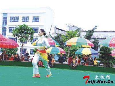 龙岗区老干部活动中心、深圳市武术协会大鹏辅导中心近日联合举办“大鹏武术交流会”。来自龙岗区老干中心木兰英姿队、葵涌老干太极队、南澳老干太极队、第二小学少年武术队、大鹏太极队130多人参加表演。 “站似一棵松,卧似一张弓……”在铿锵有力的《中国功夫》的歌声中,拉开了此次武术交流会的序幕,各路队员分别表演了木兰拳、太极拳、剑、刀、枪、扇、球等精彩的武术节目。此次武术交流会在全体参会队员共同表演的28式木兰拳中结束。据悉,举办此次武术交流会的目的旨在切磋武艺、增进友谊,传承和发扬中华武术的文化瑰宝,同时带动更多群众参加强身健体活动。 据了解,大鹏太极拳队建立于2005年3月,该项目得到大鹏街道党工委、办事处的大力支持,并要求树立一个新的品牌,现共有老少太极队员500多名。2006年9月经深圳市武术协会批准,成立了“深圳市武术协会大鹏辅导中心”,在今年11月8日的“大鹏街道第四届运动会开幕式”上成功组织500人同台表演,受到了领导和广大观众的一致好评。11月初,在参加广东省传统武术锦标赛中,荣获4金10银的好成绩;在参加深圳市第八届传统武术比赛中荣获10金22银的好成绩。大鹏街道第二小学少年武术队在今年12月参加深圳市第八届传统武术比赛中,荣获1金15银的好成绩。龙岗区英姿木兰队今年在参加全国、省、市木兰比赛中,都荣获团体金奖。(下图为女子太极拳表演。)