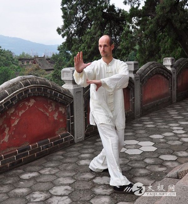 8月初开始,深眼窝挺鼻梁的德国青年托比亚斯就看中了天水市玉泉观的幽静,如果天气允许,他会独自一人或跟师父一道来到这里,找一个僻静处,换上一身素白的练功服,伸展腰身,来一套太极道的拳法——从早晨8时一直练到将近中午时分。