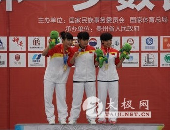 “我们都是天津大学的,刚上大学起就配合训练,一直到现在,也有三年多了。”天津队的满族运动员杨雪婷说,“今天这套对练的动作配合主要是“快”和“猛”,而且配合过程中动作的过渡都比较的顺畅。”第一次参加少数民族运动会就拿到了一等奖,对三个姑娘来说是莫大的鼓励和荣誉。杨雪婷说,她们三人之中练武最少的都有十年了,大家从小就很喜欢武术,虽然训练很辛苦,也有受伤流血,但是三个人从来没有放弃过。 |