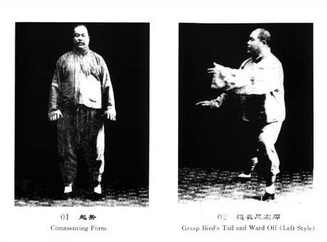 先说杨式太极拳的迈步。“两腿宜分虚实,起落犹似猫行”。怎样才能练出猫行步?方法如下:出脚时,脚踝放松,先以大拇趾引领,与地面平行向前探出,随即脚跟着地,前脚掌略向上扬(不要过高),将前脚掌落平后,屈前腿蹬后腿,重心前移成弓步。注意,向前迈步时,体重要坐在支撑腿上,劲力从支撑腿向下松沉,迈出的脚自然被送出。就好像翘翘板一样,一端向下,另一端自然向上,尾骨坐在脚跟上,以腰弓的弹性将脚送出。弓步完成时,弓腿以小腿与地面垂直为宜,膝盖前弓万万不可超过脚尖,感觉全脚掌与地面贴平,俗称涌泉穴与大 地接吻,脚上各个关节都要放松。“腿曲至垂直为准,逾此谓之过劲。身躯前仆,即失中正之势。”澄甫先师之言不可不察。