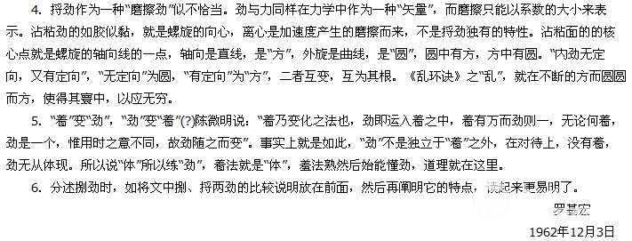 编者:顾留馨与罗基宏先生的通信,跨度从1962年至1984年.是我们今天研究当代太极拳运动发展的珍贵史料。本汇编通信按发信时间排序,全文近二万字,将陆续刊出。