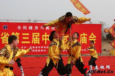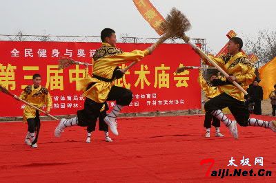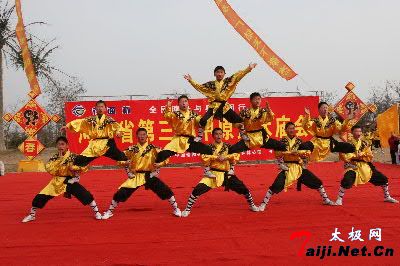 2月25日,来自开封市的青少年武术团体正在表演少林武功。 2月25日,来自郑州市的老年武术团体正在表演太极扇。 2月25日,来自开封市的民间盘鼓队正在为武术庙会助兴 2月25日,为期八天的第三届中原武术庙会在河南开封市万岁山森林公园举行,此次武术庙会不仅有少林武功和太极拳、少林拳、心意拳、查拳等表演,还有精彩刺激的散打擂台搏击、太极推手和中国式摔跤擂台赛等活动。 |