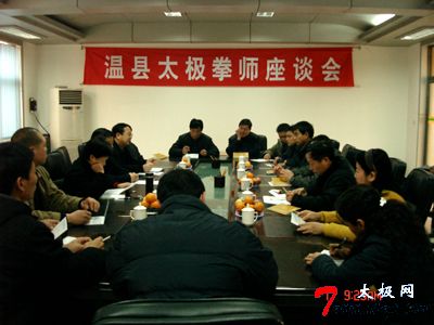 | 3月1日上午,焦作市体育局在温县县委三楼会议室组织召开了温县太极拳师座谈会。2007年8月20日-25日将举办的第四届中国焦作·国际太极拳交流大赛暨首届全国新农村农民太极拳健身大赛、迎奥运万人太极拳演练等一系列大型活动成为本次座谈会的热门话题。