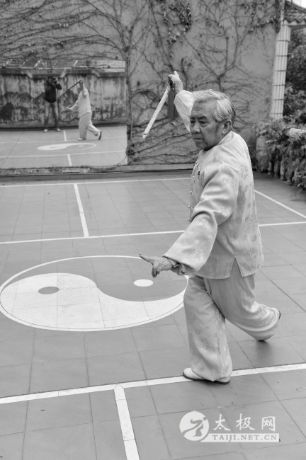 昨日上午,梅应生在自家的天台上展示了几招自创的“养生太极拳”。身着一身轻薄练功服,伫立在寒风中的梅应生面色红润,推掌提膝间,劲力十足。