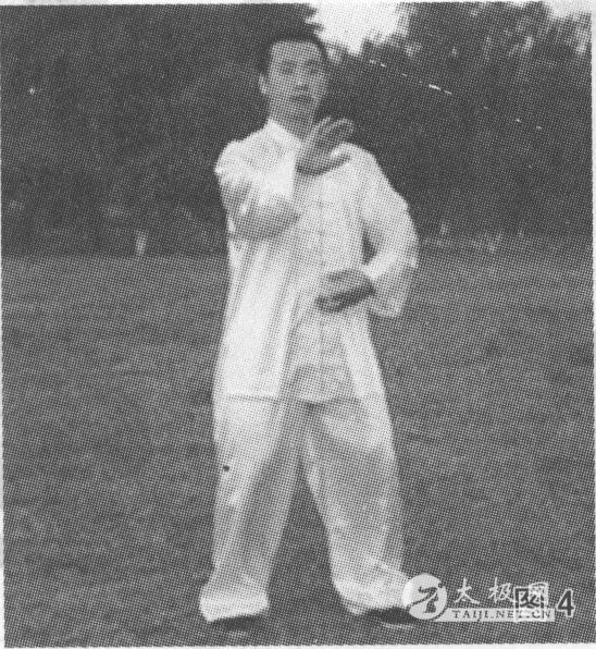 动作四:胸腰螺旋左转,松左胯翻右臀,裆走后下弧重心右移,左腿顺缠蹬劲,右腿逆缠合劲,两膝开合相寓。同时,右手自右腹前塌掌根变逆缠走弧线向前棚出至胸前中线,斜立掌,掌心向前,略突出大鱼际, 左手自胸前中线塌掌根变顺缠走弧线收回至左腹前,成横掌,掌心向上,略突出小鱼际。立身中正,虚领顶劲,松肩坠肘,两臂拥圆,胸向东南,眼视前方,如图(4)所示。       要点:练习时,注意手脚的缠丝要协调一致,重心与胸向的变化正好相反,双手要做到相吸相系,像有一个绳子将两手连起来一样一动都动,同时不要敞裆。尾间要回收,命门要后撑,使腰劲塌下来,令双足根发重。      总述:交叉缠丝在练习时,双手走的圈如同揉太极球一样,把两腿的力量通过丹田内转,旋脊转背交叉传递到双手上去,当一腿为顺缠时,另侧前拥之手则为逆缠,当前拥之手收回为顺缠时另侧之腿为逆缠,双手与两脚的缠丝劲路正好相反,相互交叉,左右交替运行。在呼吸上以肺呼吸与丹田呼吸相结合,做到不憋、不喘,呼吸自然通常为宜如图(3-4)。为完成一次揉球动作,双手与周身的缠丝也同时完成。可按此法虚实互换左右交替练习,时间可随功力的增强而不断加长。收功时双手与两脚同时螺旋运化,两臂放松垂于体侧,成动作一姿势,使内气由丹田而出行遍全身,归与丹田,静立片刻调息调气后方可离去。(待续)