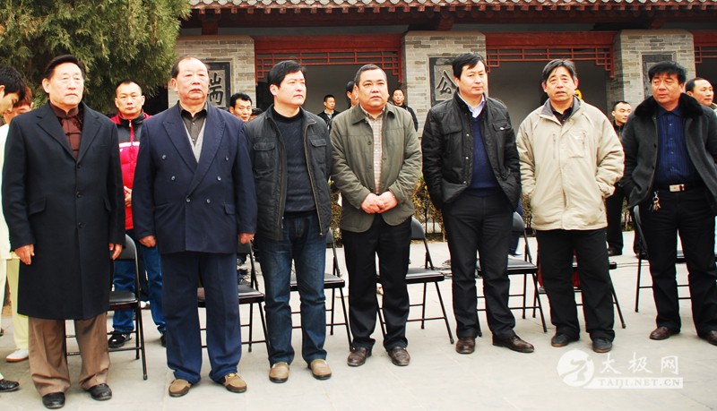 左起:太极大师陈小旺、原温县政协主席史绍文、温县副县长张金太、 赵堡镇党委书记焦海东、体育局局长宋明军、太极拳大师陈小星、陈家沟村主任陈景元 |