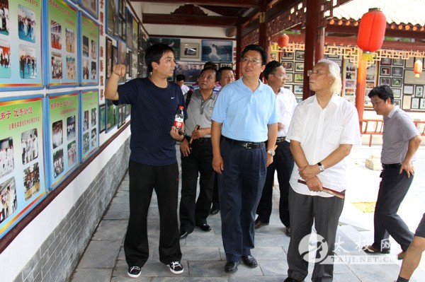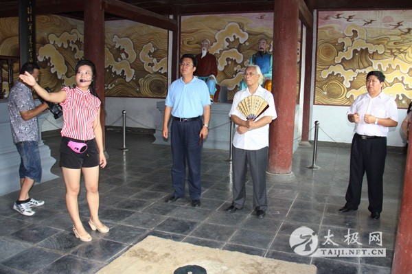 刘魁立一行参观太极拳祖祠 刘魁立一行观看精彩的太极拳表演 7月27日,国家非物质文化遗产专家委员会副主任刘魁立、中国非物质文化遗产保护中心副主任罗微一行莅临温县陈家沟太极拳文化旅游区,就太极拳申报世界人类非物质文化遗产代表作工作进行考察。省文化厅非遗处副处长张永俊、省非物质文化遗产保护中心主任裴景岭、省非遗专家委员会秘书长尚春升,县长李英杰、副县长张金太等陪同。 |