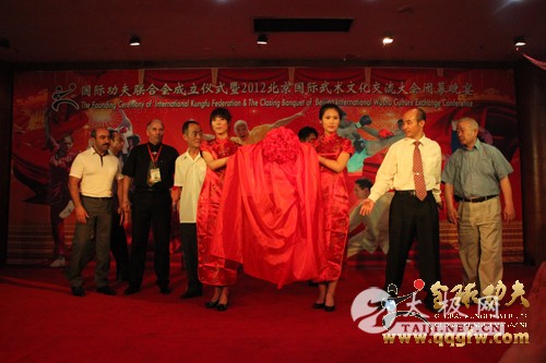 8月14日晚7点,于北京成功举办了国际功夫联合会揭牌成立仪式。来自中国、俄罗斯、美国、英国、新加坡、阿塞拜疆等国家的武术爱好者聚一堂,共同庆祝国际功夫联合会的成立。 揭牌仪式 出席仪式的领导与嘉宾有:联合国友好使者、中国武协副主席、国际功夫联合会主席、大会组委会执行主席傅彪先生,原中国武术协会副主席吴彬先生,原中国武术协会副主席张山先生,国际功夫联合会副主席兼欧洲功夫联合会主席尼克来先生,国际功夫联合会副主席兼散打专业委员会主任卡美力先生,原中国武术协会社会部副主任、国际功夫联合会秘书长刘普雷先生,北京市台办副主任、国际功夫联合会副秘书长杜德平先生,北京市昌平区体育局副局长杜新潮先生,北京市昌平区体育局副局长常新华女士,北京市昌平区体育局副局长张敬东先生,北京市武协副主席王汉先生,国际功夫联合会执行秘书长兼阿尔泰武术联合会副主席娜塔莎女士等。 在发言中,傅彪首先引用武术名家之言——“武术源于中国,属于世界”,主要是为了强调了武术是一门世界性的项目,国际功夫联合会将团结世界各地的武术爱好者,实现武术文化在中国的大发展,在世界的大繁荣。;其次说明了自己创办全球创业网的目的还是为了服务于武术,功夫毕竟还只是个单项项目,武术需要发展,就需要有强大的经济作为后盾;要想将武术广泛推广到全世界,就需要国家和个人投入资金,就像跆拳道那样;再提到了本届武交会也是在赔钱赚人气,就是为了武术这一共同的事业能够更好的发展,团结大家协作,实现共赢发展。 随后,尼克来表示武术是中华武术重要的一部分,本次成立联合会在主席的领导下一定会取得很好的成绩;功夫在一些国家已经被认可,要发展武术需要获得社会的支持。卡美力则表达了自己对所有人的感谢,特别是傅彪;刘普雷在发言中表示,发展和推广武术要持之以恒,本次大家欢聚一堂,对于武术是一个很好的发展和总结;希望大家团结起来,以愚公移山的精神为武术的发展做贡献。张山也对本次武交会的成功举办表示了祝贺,武术发展欣欣向荣,今年武术类的全国性比赛多达70多场,需要在人力物力上的大力推广。 国际功夫联合会成立于2012年,注册地在中国香港,总部设在中国北京(主席和秘书长所在地)。国际功夫联合会旨在通过功夫竞赛和健身,提高世界人民的健康水平。国际功夫联合会主席由联合国友好使者、中国武协副主席傅彪担任,第一副主席由沙米利(俄罗斯)担任,五大洲各设一名洲际主席,由国际功夫联合会副主席兼任。尼克来(乌克兰)担任副主席兼欧洲功夫联合会主席,卡美力(俄罗斯)担任副主席兼功夫散打专项委员会主任,本扎(加蓬)担任副主席兼非洲功夫联合会主席,秘书长由刘普雷担任,副秘书长由伊戈尔(乌克兰)担任。 国际功夫联合会向各国和地区的功夫协会及各洲际功夫联合会开放。各个国家和地区的武术功夫机构均有资格申请成为国际功夫联合会会员。国际功夫联合会下设传统武术、功夫散打、太极、推手、少林、武当、峨眉等专项委员会。凡是习练人数多,均可申请设立专项委员会的标准,申请者向国际功夫联合会缴纳一定的会费即可成为专委会。 现场表演 |