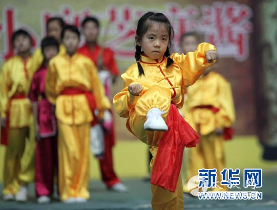一小选手在参加比赛 参赛者在比赛中 新华网山东频道10月2日电 2日,首届中国·潍坊武术文化节在山东省潍坊市潍坊学院体育馆举行,吸引国内67支武术团体的776名专业选手以及业余武术爱好者参加。本次活动旨在弘扬中国武术文化,积极倡导全民健身。