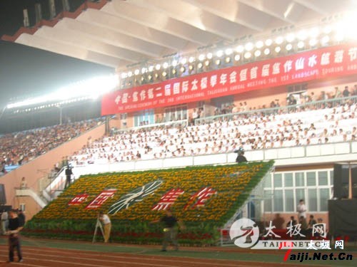 【中国•焦作第二届国际太极拳年会】 2002年8月28日至9月1日,中国•焦作第二届国际太极拳年会在焦作市举行。本届年会由国家体育总局武术运动管理中心、中国武术协会、河南省体育局主办,焦作市人民政府承办,参赛团队来自24个国家和地区,共有156支队伍1370人。其中外国和港台团队41个316人,分别来自美国、英国、德国、法国、日本、马来西亚等国家和地区。本届太极拳年会举行了太极拳(剑)规定套路比赛,太极拳(械)传统套路表演赛,太极推手擂台赛,三项比赛共设23个项目,参加比赛和表演赛的有2048人次。年会还举行了太极拳学术报告会、太极拳论文交流评定,太极拳、械名人名家表演等。黑龙江省哈尔滨市呈祥武术俱乐部代表队、焦作杨式太极拳协会等10支队伍获体育道德风尚奖,温县体育局、江西省武术协会和韩国陈氏太极拳研究会、美国国家武术总会等13个国内外团体获优秀组织奖,国家体育总局武术运动管理中心授予焦作市体育局年会优秀组织奖,焦作市人民政府推广太极拳贡献奖。此届年会实现了太极文化与焦作山水旅游资源的有机结合,带动了焦作旅游开发和各项事业的发展,达到了以武会友、以景悦宾、宣传焦作、共同进步的目的。