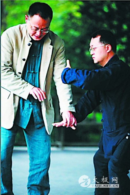 刘厚中在教徒弟练太极 最近电影《太极2》正在热映,由吴彦祖、冯绍峰领衔的一群偶像明星再次引发了全民性太极热情。太极拳,不仅仅是为了防身御敌,也是他们强身、健体修身养性的一种方式。而在现实生活中,我们身边也有这样一些“武林人士”,他们撕掉各自身上企业老总、律师、公务员、作家等标签聚在一起,将太极作为一种健康时尚的养生方式。本期养生周刊,记者走进身边的“武林”,领略他们的养生心得。 从体弱多病到太极高手 10日上午9时许,大渡口区美德公园内,一群身着白衣的人,一字排开摆好架势,只见他们竖起两掌,扎稳马步,气定神闲地打着太极拳。 站在最前面的人名叫刘厚中,是其他人的老师。你很难想象如此一位气定神闲的人,前一天正以律师的身份在法庭上口若悬河,眼神犀利。而一到周末,他就是八十多名徒弟心目中的“太极大师”。 今年44岁的刘厚中从小体弱多病,但是和大多数男孩一样,他也有一个梦,一个仗剑千里、快意恩仇的武侠梦。26岁那年,他开始学习太极拳。“练着练着就觉得身体越来越好了。十几年就坚持过来了。”如今,他已经成为圈内小有名气的太极大师,收了八十多名徒弟。最近他还自己创作了一本关于太极的书叫《身边的武林》,并由功夫明星李连杰的师傅吴彬亲自为他写序。 不只是老年人才打太极 也许大部分人都觉得太极是老年人的运动。但是在刘厚中的太极圈里,大部分人都是二三十岁的年轻人,最小的只有8岁,有的甚至经打了近十年的太极拳。其中有公务员、企业老板、博士等不同人群。 据了解,练习太极拳的这些人中,有几个年轻人,曾经听说运用太极拳,几个人都无法将刘厚中推到,于是来向刘挑战,没想到几个自认勇猛的年轻人与刘厚中过了几招后,很快被就掀翻在地,输得心服口服,最后也加入了打太极的行列。 “太极,其实是一项老少皆宜的运动,如今的年轻人更适合打太极。”刘厚中说,现在一些年轻人由于生活压力大、心浮气躁,往往做不好事情。而太极拳更注重的是精神的专注,把心静下来,生活中很多事情跟打太极一样,有时候用力太猛不懂迂回,反而败下阵来,懂得心平气和不失为一件好事。 太极拳有哪些好处?武林高手告诉你 周星驰经典电影《少林足球》里,众多暗藏民间的功夫高手让人惊叹。而现实生活中,重庆也有很多这样不显山露水的太极拳爱好者,企业老总、律师、公务员、作家……他们练太极的目的不为别的,只想强身健体修身养性。 武林人士:朱鸿 推拿养生馆馆长 练拳心得:活血通络提神醒脑 朱鸿之前是某企业高管,因工作的原因身体长期透支,处于亚健康状态。而从小自己就喜欢武术这些东西的他,一次偶遇让他进入了太极的大门,并一发不可收拾。几年后他自己开了一家推拿养生馆,把太极和养生融会贯通,过起了悠闲的生活。 “活血通络提神醒脑是练太极的好处,太极跟推拿都讲究"松、顺、圆",前人练太极拳是保命,现代练太极拳是"保身体健康",练精气神,就是对内脏的按摩,所以首先得明白自己在练什么。”他说, 太极拳和一般的健身体操不同,除去全身各个肌肉群、关节需要活动外,还要配合均匀的深呼吸与横膈运动,而更重要的是需要精神的专注,心静、用意,这样就对中枢神经系统起了良好的影响,从而给其他系统与器官的活动和改善打下了良好的基础。 朱鸿表示,其实最好在30岁之前就应明白如何去保养自己的身体,这时人的生理开始走下坡路,从此刻开始维护是最好的,练传统的太极拳是一个很不错的养生活动。 武林人士: Tim IT公司总经理,美籍华人 练拳心得:学会思考塑造品性 父母都是香港人,但Tim从小却在国外长大。如今,他在美国、香港和重庆都有经营公司。今年3月来到重庆,Tim因为时差原因,深夜还要处理美国公司的事务,而白天又要很早起床打理重庆公司的一切,两个星期下来就完全吃不消了。 作为2007年和2008年的两届马拉松选手,Tim说以前在美国运动锻炼都比较直接,比如跑步、骑单车等。而太极传统味儿很浓,主修内在,作为一个华人,他也想更深入地去了解自己民族的传统文化,再加上一次机缘认识了现在的刘师父,便认真地学起了这门“功夫”。近两个月以来,Tim每周六都是到得最早的一个,他学过很多东西,也很善于思考。他说,经过这段时间的学习,他把在太极里最大的收获运用到了为人处世和生意上,改变了很多想法。因为自己力气大,刚开始推手时,师兄的拳打过来,他会很直接地正面迎上去推开,如此往复,不是伤到自己就是伤到别人。现在慢慢懂了,保护自己的意识太强就容易有负面情绪,而放松去平衡自己,要学会冷静思考去把这些负面能量就会被化解掉了。 武林人士:周悦 广告公司老板 练拳心得:重在养心心静则顺 今年39岁的周悦是一个女强人。做媒体的人性格上都会有一些强势,特别是女孩,风风火火,不愿吃亏,自己在20来岁的时候脾气就非常不好。30岁那年,有一天她突然觉得自己的生活太快,生活得特别累,每天都在忙,但是似乎什么都没有忙好。 6年前,偶然的机会让她开始真正深入接触太极。很多人练太极只模仿招式,练的是个花架子,而不是真正从太极中去领悟生活的哲学。周悦说,女人更要学会“静”,静能生慧,只有对别人宽容,才能用智慧去做事,而不是靠运气和小聪明。太极是包容的,不仅是身体上的一项运动,更是一门哲学,