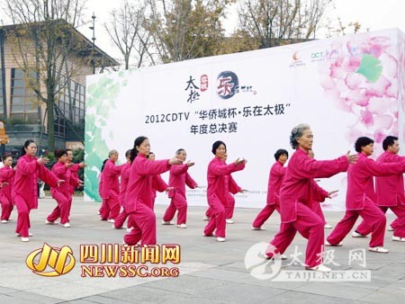 | 12月6日,由成都市体育局和成都电视台共同主办的乐在太极总决赛在华侨城公园广场拉开帷幕,来自全市各区市县的66支代表队在此展开角逐。记者注意到,与通常比输赢不同的是本次大赛重在娱乐,主办方希望通过趣味太极和太极才艺等方式全面展示成都的太极文化韵味。 参与比赛的队伍中,既有七八十岁的老人,也有十五六岁的小伙儿。大家拉开架势以武会友,场面好不热闹。对此主办方工作人员告诉记者,太极拳运动在成都市全面推广以来,受到了众多健身爱好者青睐,习练人数不断增长。说起打太极的好处年过六旬岁的丛大爷体会深刻,“其他好处我就不说了,光血压一样,我以前是180,打了两年太极拳后已经控制到140了。” 丛大爷告诉记者,自己退休前是一名高级电气工程师,长期坐在办公室里编程序,运动量太少造成身体状况很糟糕,“很多高级知识分子都有这样的问题,而且退休后很多又返聘回去继续工作,像平时一起打太极的百来人中只有一两个高级职称。所以我建议高级知识份子们真的要多锻炼锻炼啦。”丛大爷同时呼吁政府能够提供更多场地给市民习练太极,“目前场地不够只能在街边打拳,灰尘大噪音重,能多些绿地就好了。” 根据比赛章程,本次乐在太极决赛产生三十二强后将于12月15日结束,之后会通过终极对抗赛产生最终的冠亚季军。优胜者不但能在电视颁奖典礼上展示太极拳和太极才艺,还有价值两万元的奖金可以捧回家。