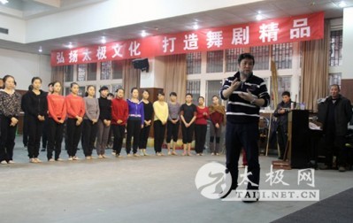 今年注定是河南歌舞演艺集团最忙的一年。该集团历史上最重要的两部原创作品舞剧《太极传奇》和交响乐版《朝阳沟》同时进入首演倒计时阶段。日前,这两部作品先后向媒体开放,记者提前一睹芳容。 舞剧《太极传奇》:大手笔大制作 震耳欲聋的鼓声敲得人热血沸腾。在一片叫好声中,陈云天、蒋龙飞两位武林高手垫步踏上擂台,二人怒目凝视,伸掌便劈,生死决斗就此拉开。打斗正酣之时,蒋龙飞的利剑却无情地刺入女主角叠彩的胸膛…… 河南歌舞演艺集团董事长周虹现场指导 总导演陈维亚向媒体介绍相关情况 这是记者1月10日在河南歌舞演艺集团排练厅看到的《太极传奇》最高潮部分第四幕“比武”。9天后,该剧将在河南艺术中心大剧院正式公演。 酝酿4年之久,投资1000多万元的大型原创舞剧《太极传奇》以焦作陈家沟陈氏和蒋氏两个家族的恩怨情仇为主线,采用“舞+武”的呈现方式,表现太极世界的神秘和太极理念。 封闭排练期间,总导演陈维亚的团队和70多位舞蹈演员一起,以排练厅为家,每天工作14个小时以上。陈维亚说,“大家都是带着朝圣的心态来打磨《太极传奇》的。”河南歌舞演艺集团董事长周虹说,《太极传奇》是省委宣传部和省文化厅全力打造的重点剧目,展现了博大精深的中原文化和积极向上的民族精神。