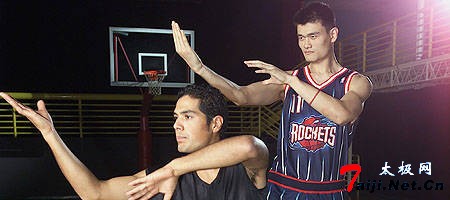 人们都还记得姚明加盟NBA后,NBA为其设计的官方形象广告——打太极拳。而今小巨人在屏幕上摆出的“太极花架”或许能让其在壮汉如林的篮下如虎添翼。日前,旅居休斯敦的著名陈式太极拳十九代传人、美国陈式太极拳总会会长、美国全国武术总会顾问程进才先生为姚明支招,如果小巨人真正学会太极,就有可能成为NBA的巨无霸。  上图:姚明在耍太极 有肌肉更需练内气进入NBA以来,通过火箭队体能教练师的训练,姚明的身体发生了很大变化,明显强壮了很多,但遗憾的是,姚明的动作并未因肌肉的增加变得更加灵活,比赛中在对手的挤、靠、推、挠之下,体力不济导致他动作变形失误频频,最明显的莫过于从前令人惊叹的上海舞步,变成现在的简单后仰跳投。从强对抗的季后赛表现来看,越来越强壮的身体没有给姚明带来体能上的飞跃,失误反而越来越多,伤病也越来越频繁,这不禁让许多关心和喜爱姚明的国人感到困惑。