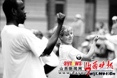 昨日,加拿大“CMAC中国功夫交流团”来到太原丈子头村,和山西的武术家交流、切磋中国武术。出拳、踢腿……41位“中国功夫迷”的一招一式都透着一股认真劲儿。